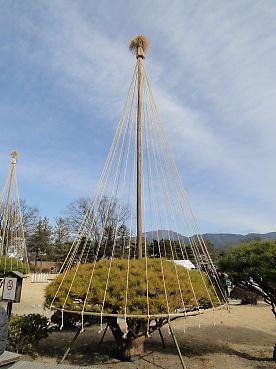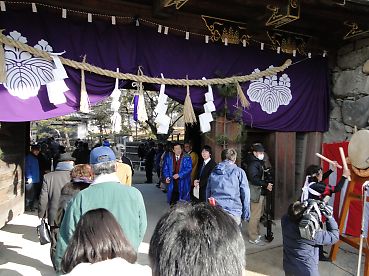 写真13:本丸で配られた紅白餅と檜ぐい呑み