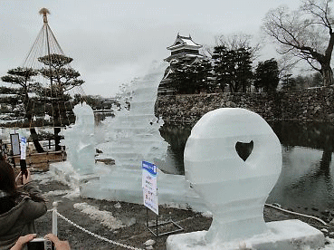 毎年1月下旬頃の土日に松本城(松本城公園)で開かれる氷の彫刻イベント。