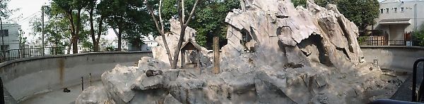 このサル山は1931(昭和6)年に完成した園内でも最古の施設の一つで、全国の動物園の同様の施設のモデルになったという。