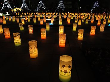 キャンドルの絵は地元小学生と、文化人、芸能人、スポーツ選手などが描いている