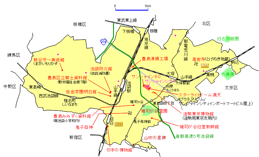 ■東京都豊島区の名所、観光スポットなどの地図情報、概要